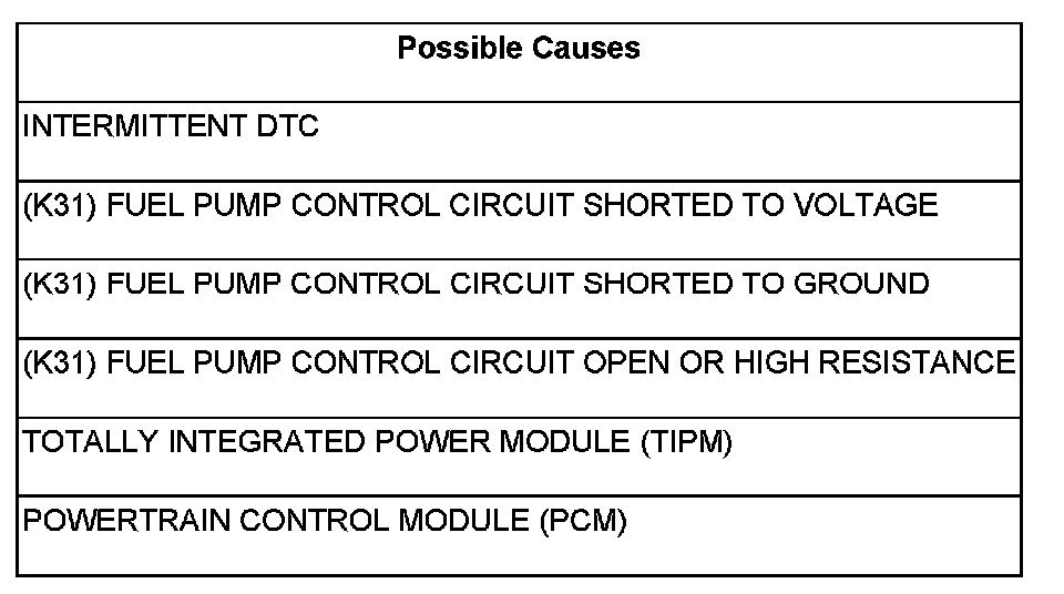 - Repair the (K31) Fuel Pump Control circuit for a short to ground.