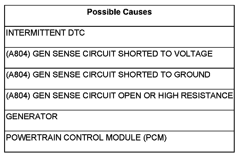 - Repair the (A804) Gen Sense circuit for a short to voltage.