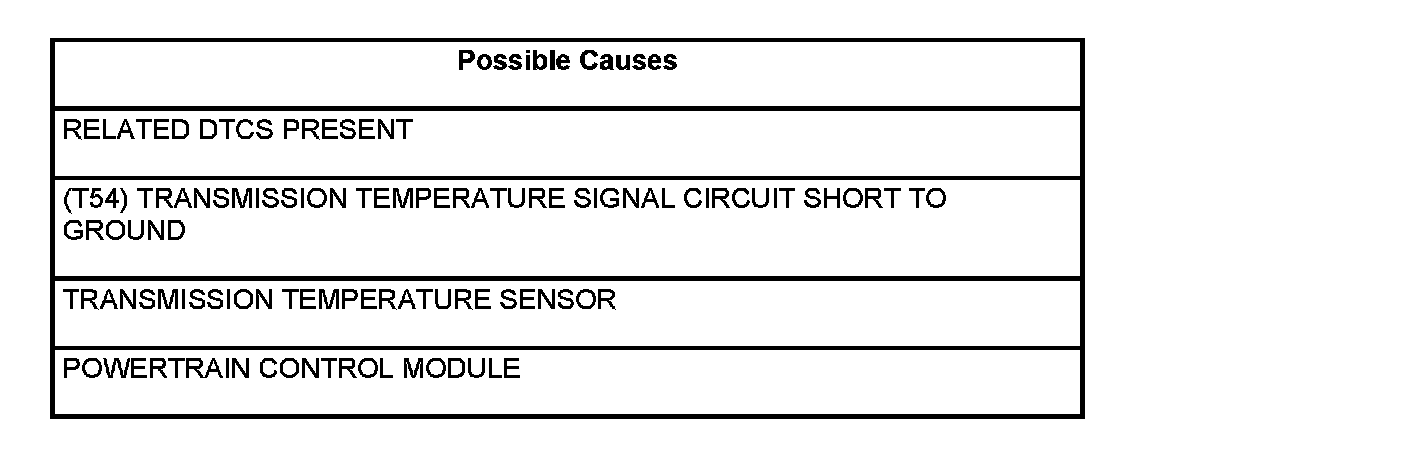 - Repair the (T54) Transmission Temperature Signal circuit for a short to ground.