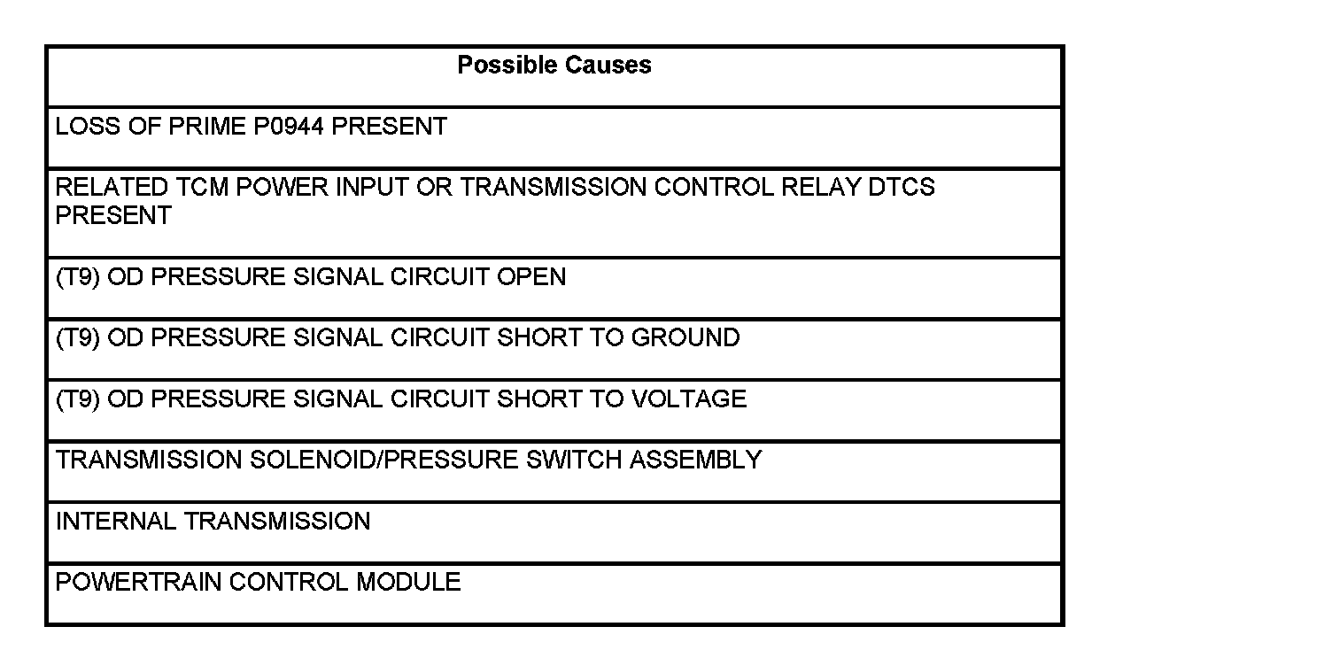 - Repair the (T9) OD Pressure Signal circuit for a short to voltage.