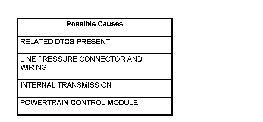 The PCM continuously monitors Actual Line Pressure and compares it to Desired Line Pressure. If the Actual Line Pressure reading is more than 172.4 kPa (25 psi) higher than the Desired Line Pressure, but is less than the highest Line Pressure ever used in the current gear, the DTC sets.