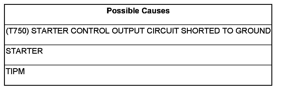 - Repair the short to ground in the (T750) Starter Control Output circuit.