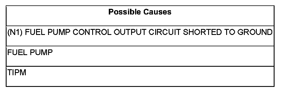 - Repair the short to ground in the (N1) Fuel Pump Control Output circuit.
