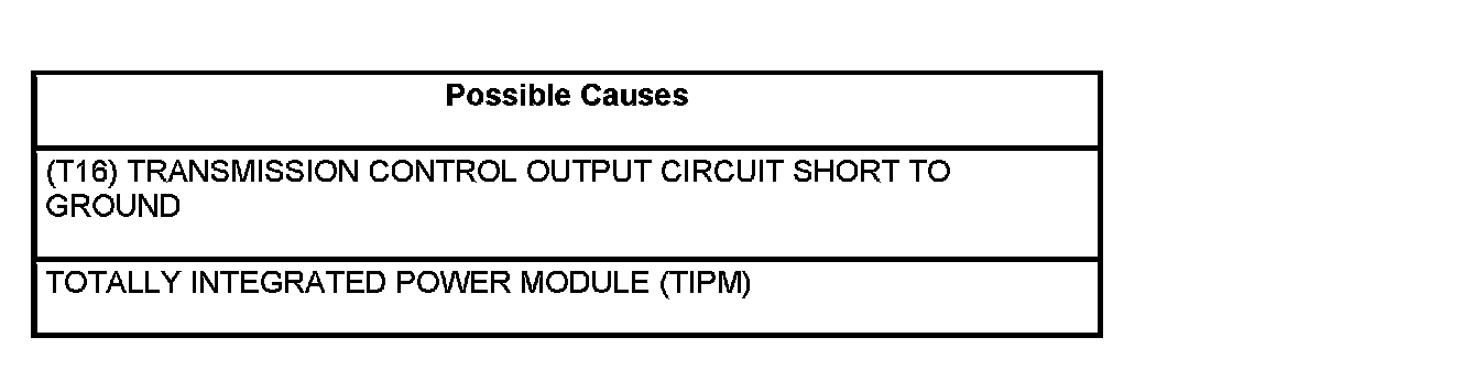- Repair the (T16) Transmission Control Output circuit for a short to ground.