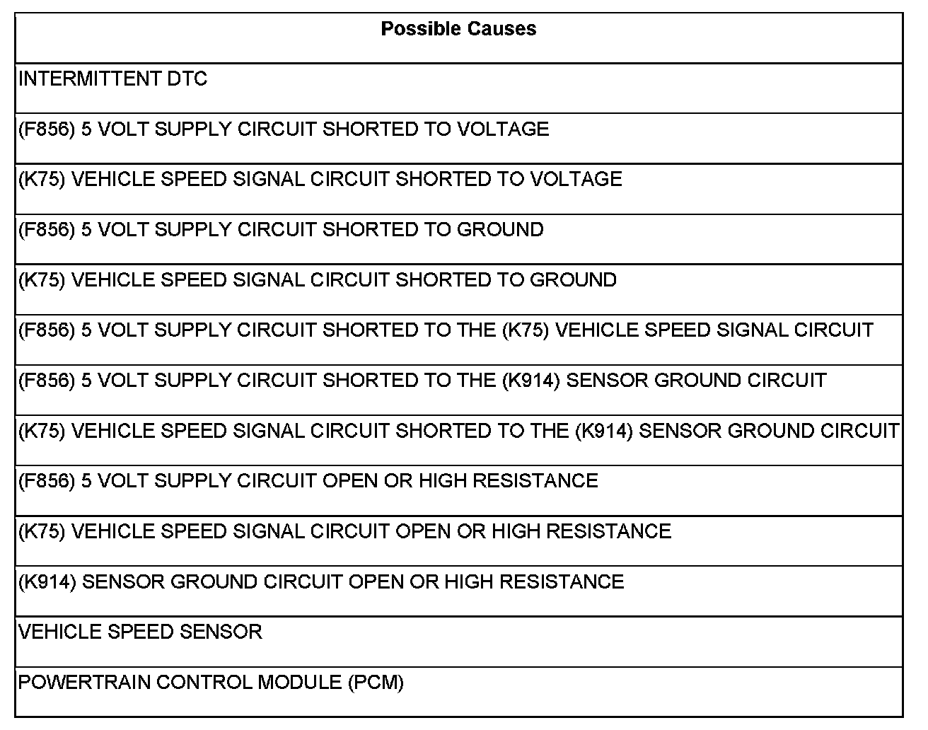 13. (K75) VEHICLE SPEED SIGNAL CIRCUIT SHORTED TO (K914) SENSOR GROUND CIRCUIT