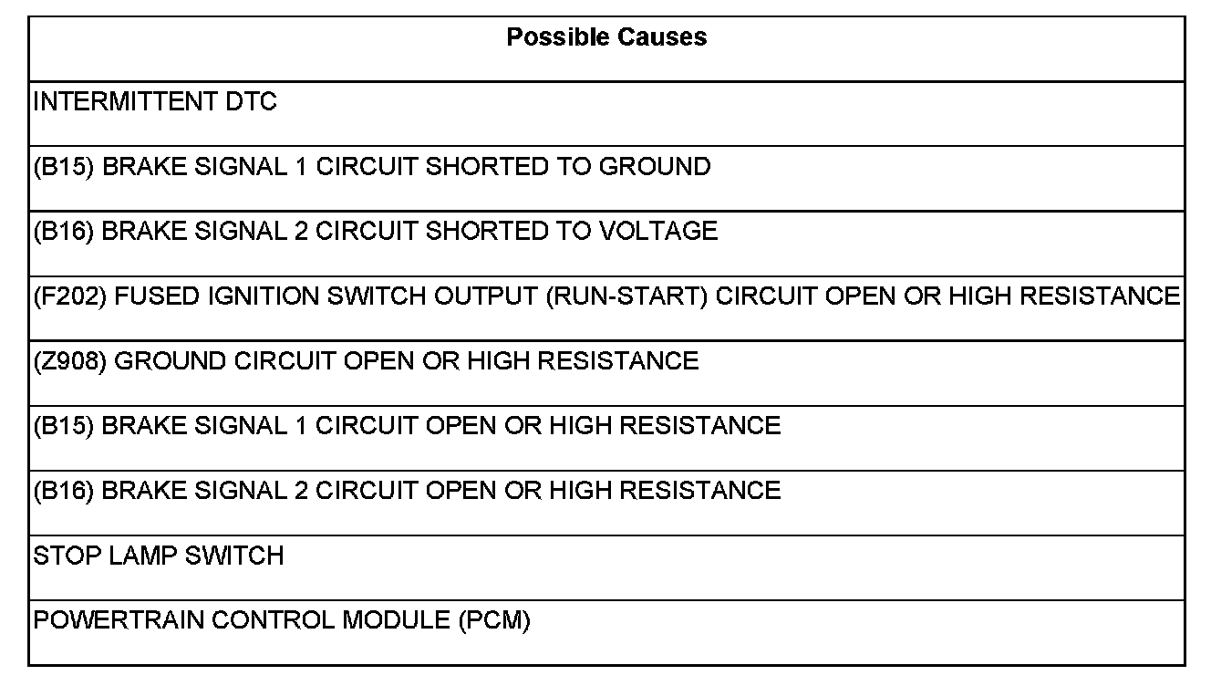 8. (B16) BRAKE SIGNAL 2 CIRCUIT SHORTED TO VOLTAGE