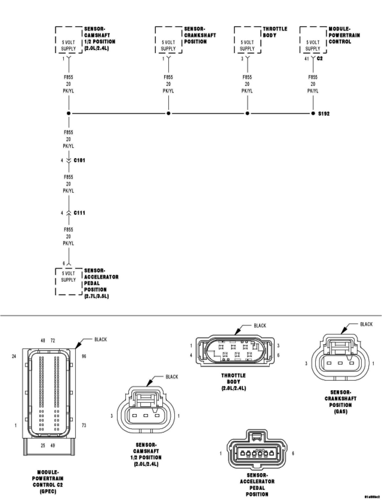 Using the wiring diagram/schematic as a guide, inspect the wiring and connectors between all applicable components and the Powertrain Control Module (PCM).