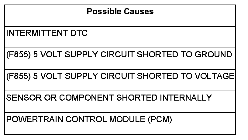 3. (F855) 5 VOLT SUPPLY CIRCUIT SHORTED TO VOLTAGE