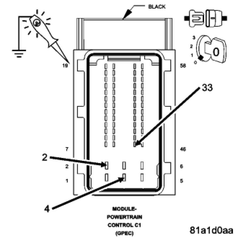 - Using the schematics as a guide, check the Powertrain Control Module (PCM) terminals for corrosion, damage, or terminal push out. Pay particular attention to all power and ground circuits. Check for Service Information Tune-ups or Service Bulletins for any possible causes that may apply. If no problems are found, replace and program the PCM. With the scan tool, perform QUICK LEARN.