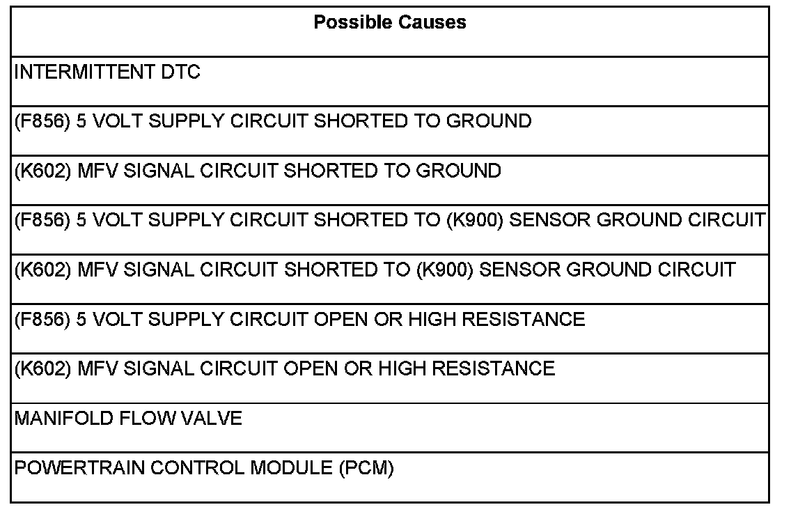 - Repair the (K602) MFV Signal circuit for a short to the (K900) Sensor Ground circuit.