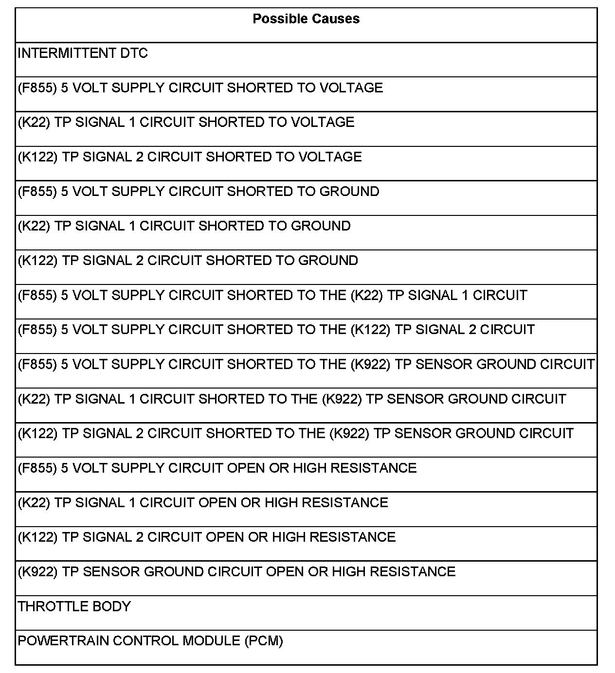 - Repair the (F855) 5 Volt Supply circuit for a short to the (K922) TP Sensor Ground circuit.