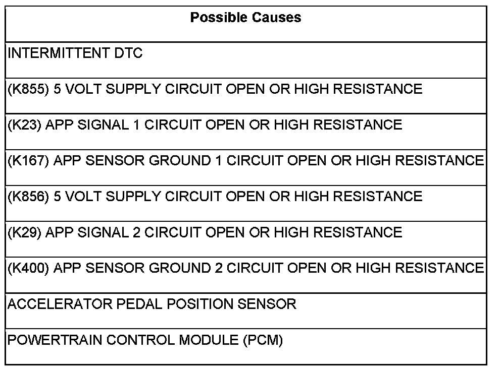 - Repair the (K400) APP Sensor Ground 2 circuit for an open circuit or high resistance.