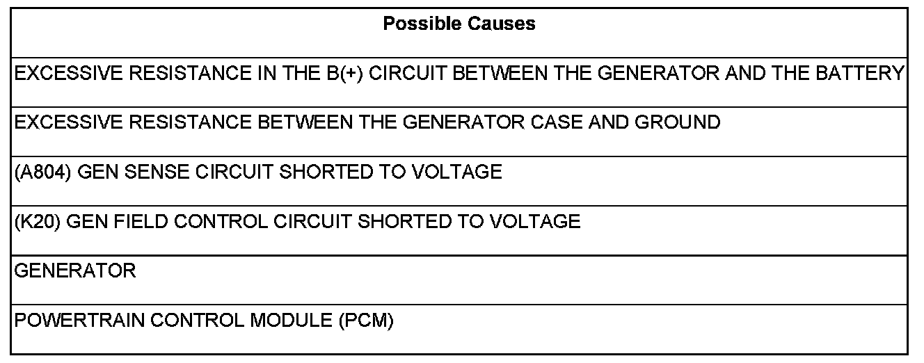 - Repair the (A804) Gen Sense circuit for a short to voltage.