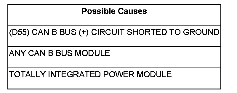 The TIPM detects the (D55) CAN B Bus (+) circuit is shorted to ground.