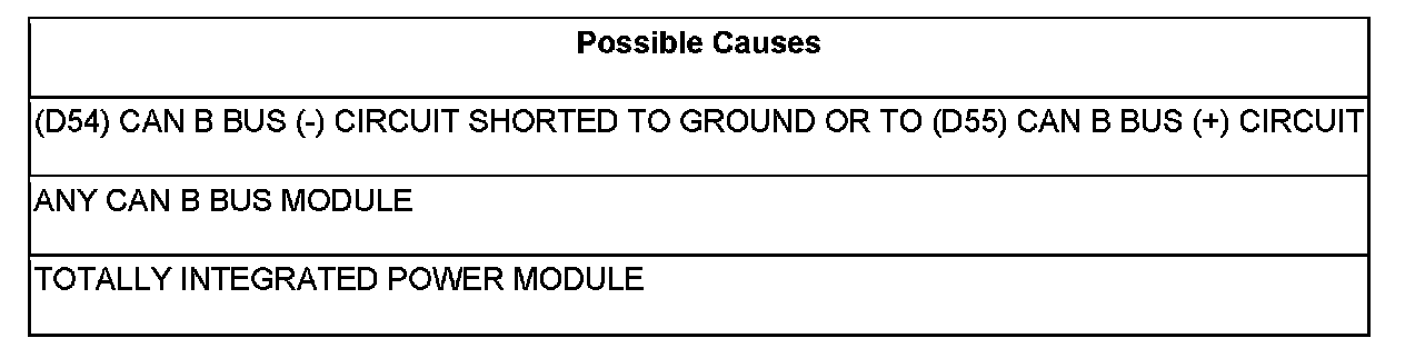 - Repair the (D54) CAN B Bus (-) circuit for a short to ground.