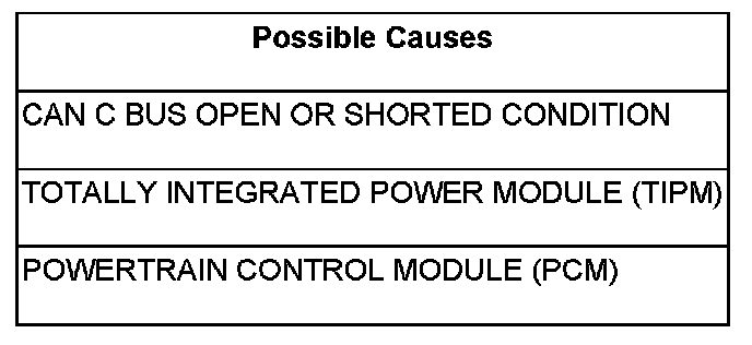 The PCM doesn't receive a message from the TIPM over the CAN C circuit for 7 consecutive seconds. The circuit is continuously monitored.
