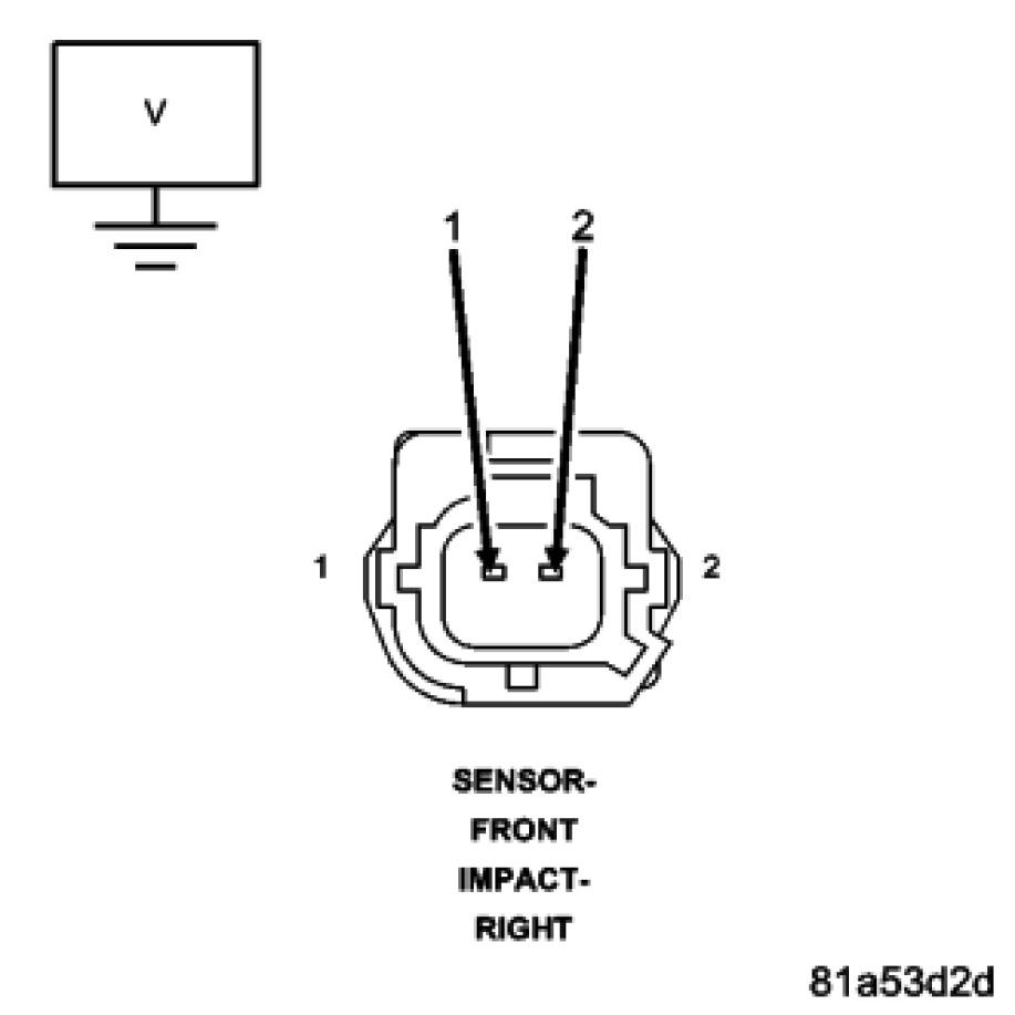 Measure the voltage of the (R80) Front Right Impact Sensor Signal circuit and (R82) Sensor Ground circuit at the Front Right Impact Sensor connector and ground.