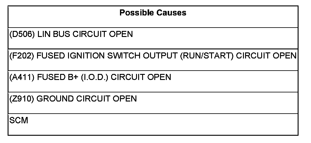 The Cluster does not receive any LIN Bus messages from the SCM.