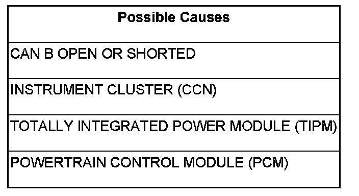 The Front Control Module isn't receiving a fuel volume signal over CAN B from the Cluster Module. The TIPM has to send the PCM a fuel volume signal over CAN C. The signal the TIPM sends over CAN C is implausible.