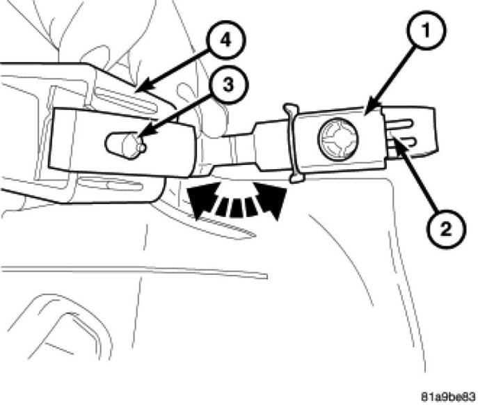 2. Using trim stick C-4755, pry the rear of panel forward disengaging clip (3).