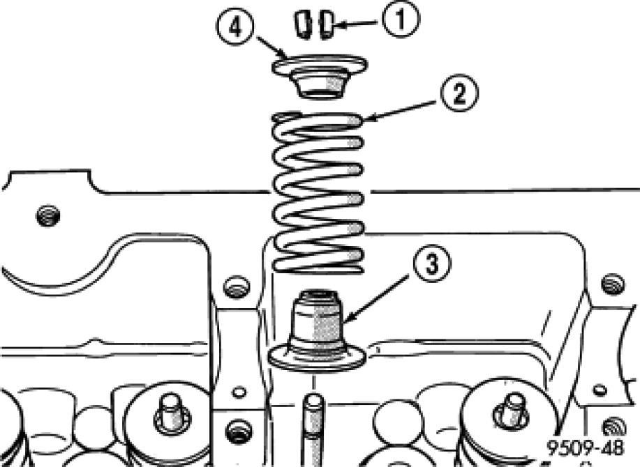 2. Install valve spring (2) and retainer (4) with keepers (1).