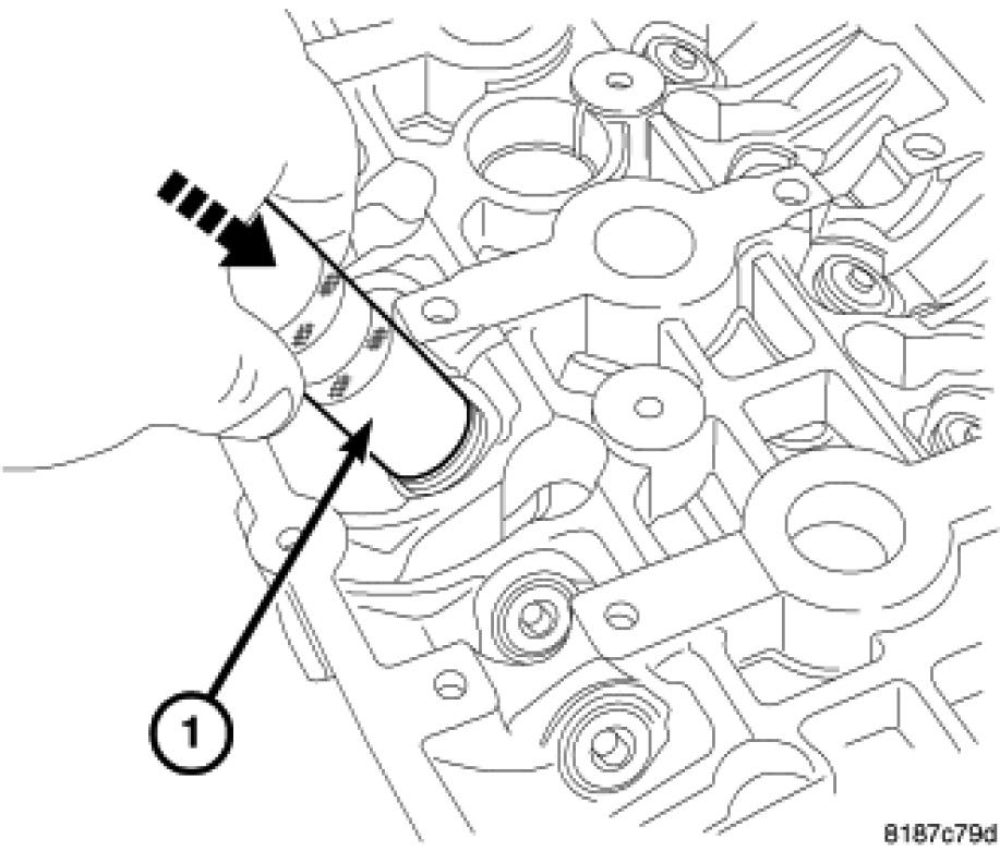 4. Using metric valve keeper tool such as Snap-on(R) GA317 (or equivalent) remover (1), remove valve keepers with a downward push.