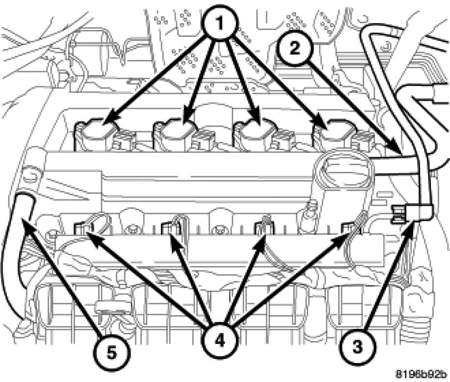 7. Connect fuel supply hose (3) to fuel rail assembly. Check connection by pulling on connector to make sure it is locked into position.