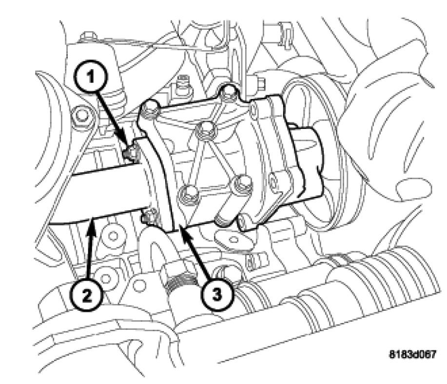 REMOVAL - 2.0/2.4LThe water pump inlet tube (2) connects the water pump to the coolant adapter. This tube is sealed by an O-ring and held in place by fasteners to the water pump housing.