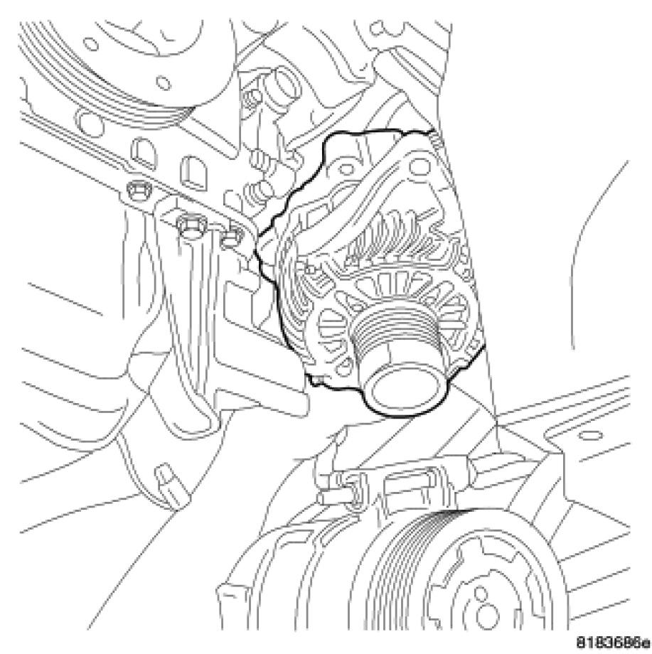 8. Loosen the A/C compressor and relocate, pull down and to outboard side of vehicle to make room to remove generator.