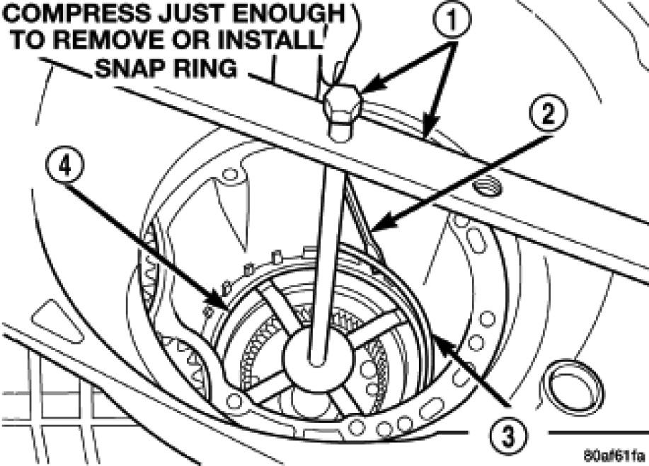 52. Using Compressor 5058 (1), compress 2/4 clutch return spring just enough to install snap ring.