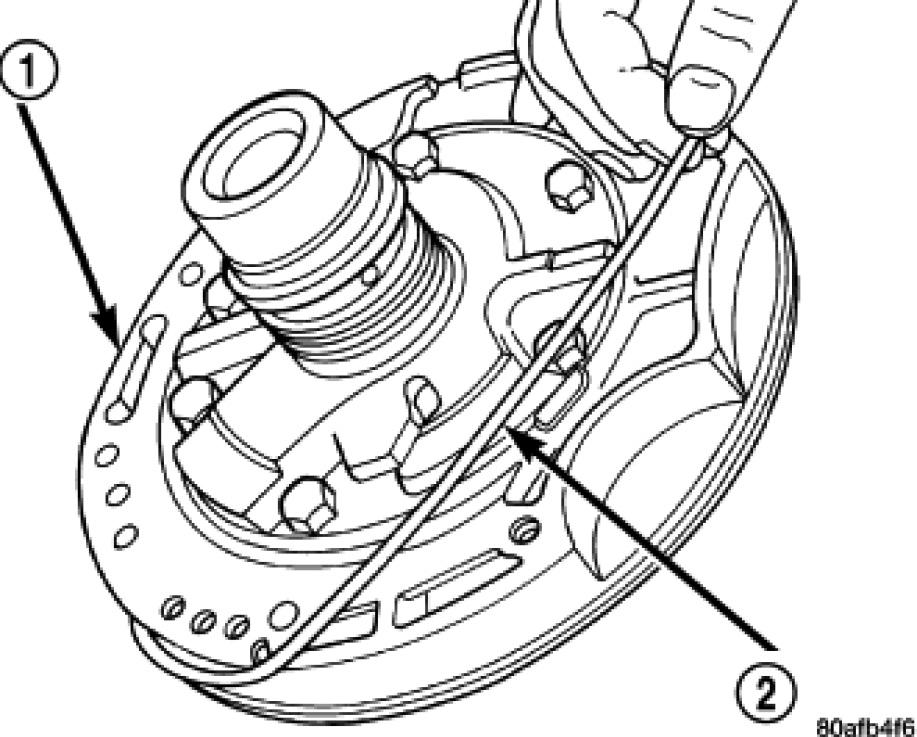 60. Remove oil pump O-ring (2). Be sure to reinstall oil pump O-ring after selecting the proper #4 thrust plate.