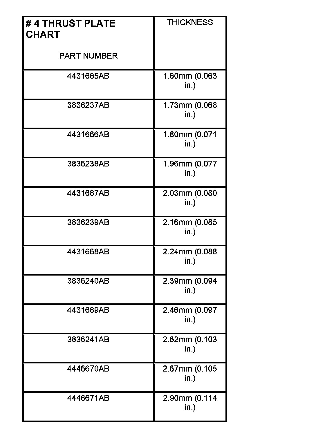 64. Refer to the # 4 thrust plate chart to select the proper # 4 thrust plate.