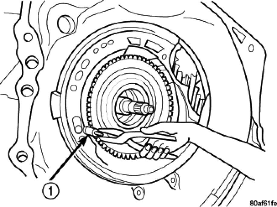 58. Select the thinnest #4 thrust plate thickness and install to input clutch assembly (1). Use petrolatum to retain.