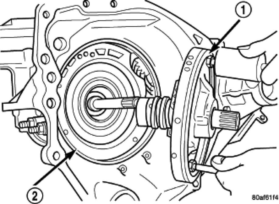 56. Install front carrier/rear annulus assembly (2) and #6 needle bearing (1).