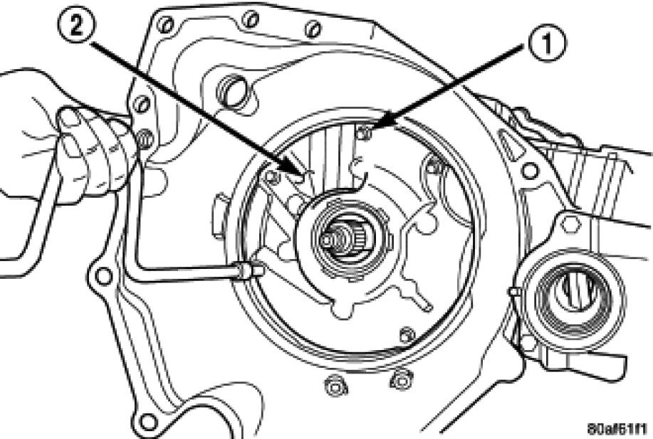 61. Install pump and gasket to transmission. Install oil pump-to-case bolts and tighten to 27 Nm (20 ft. lbs.).