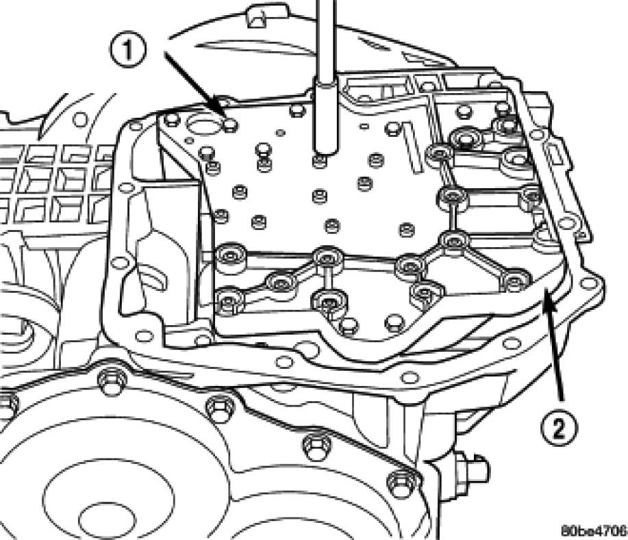 78. Apply a 1/8" bead of Mopar(R) ATF RTV (MS-GF41) (2) to oil pan (1) and immediately install to case.