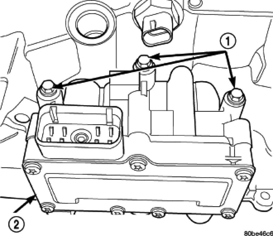 81. Install and tighten solenoid/pressure switch assembly-to-transaxle case bolts (1) to 12 Nm (106 in. lbs.).