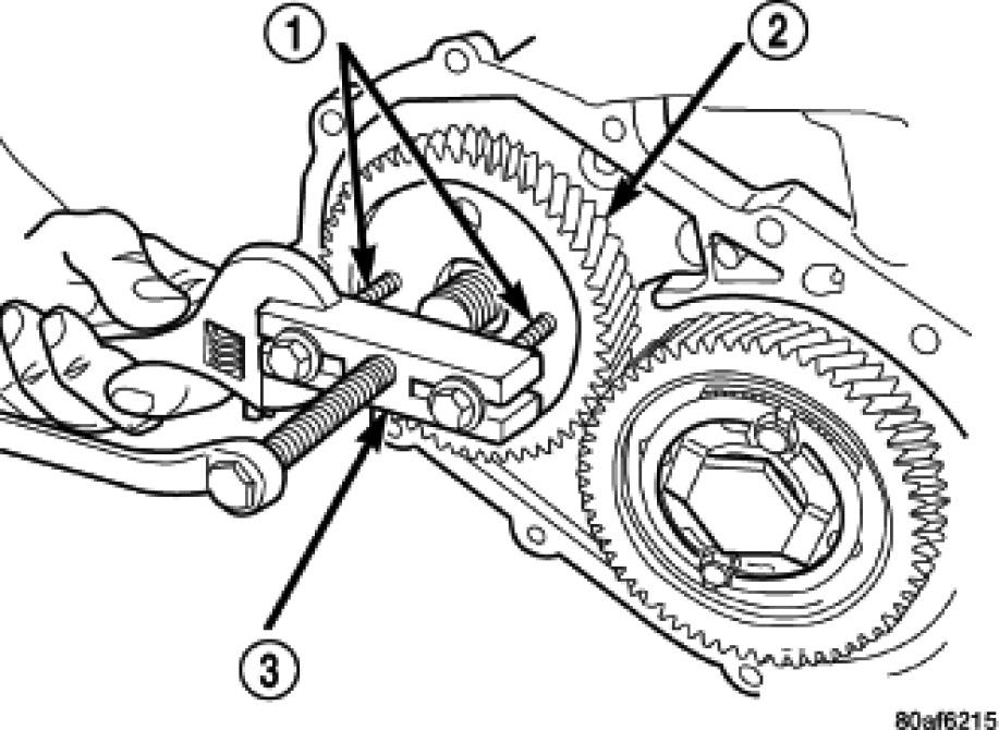 43. Using Gear Puller L-4407A (1, 3), remove transfer shaft gear.