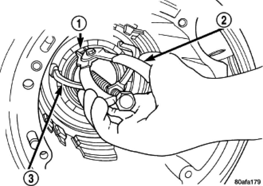 67. Using ordinary pliers, remove pivot shaft (3) and guide bracket assembly (2).