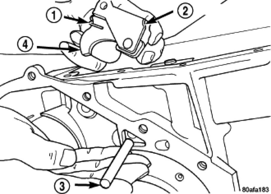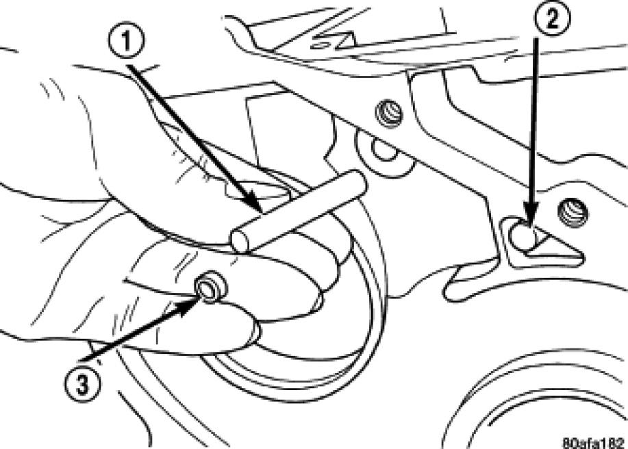 66. Using a suitable punch, drive out park guide bracket pivot shaft (2) plug.