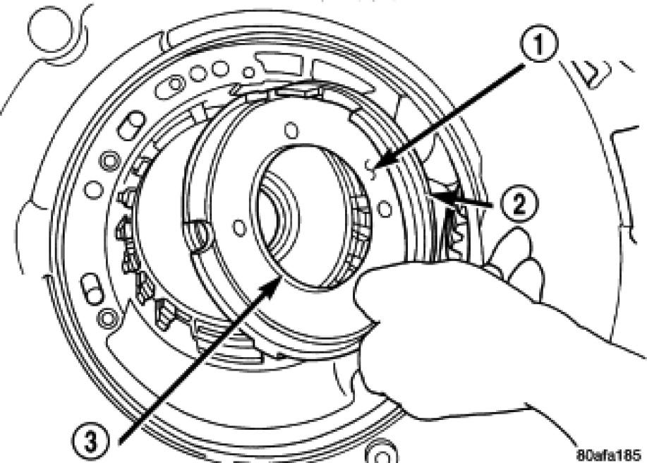 62. Assemble Low/reverse spring Disc 6057 (1), Compressor 5059 (2) and Bar 5058-3 (3).