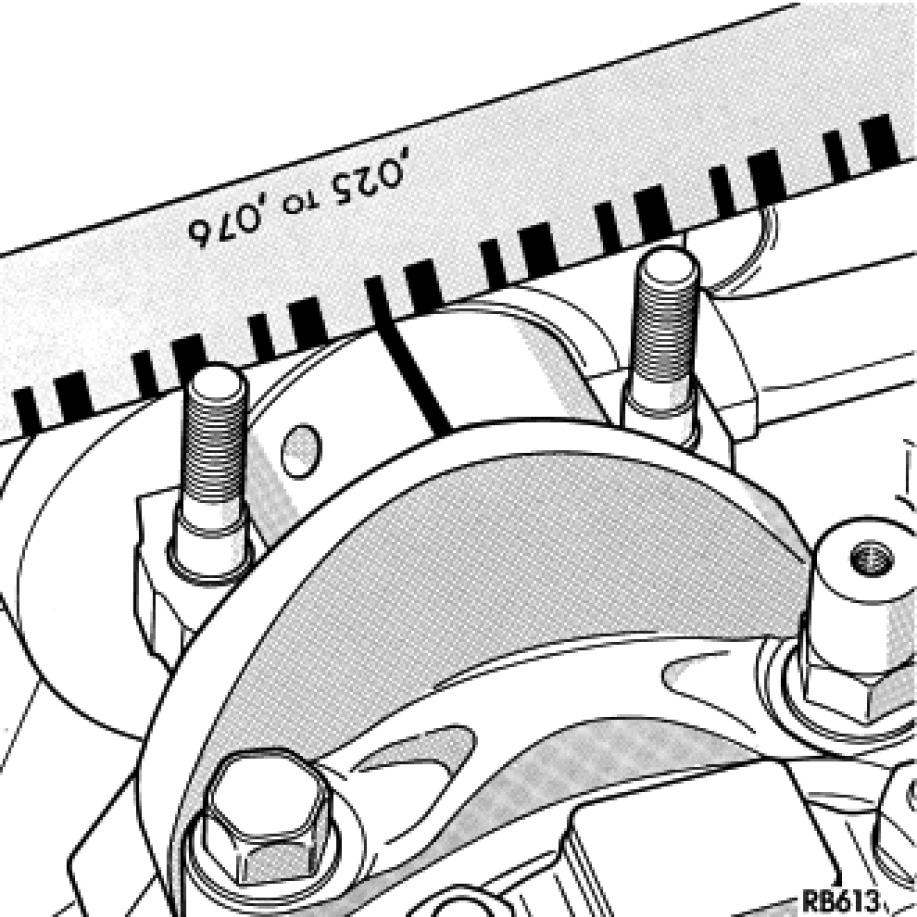 1. Examine connecting rod bolt for stretching. Stretching can be checked by holding a scale or straight edge against the threads. If all the threads do not contact the scale the bolt should be replaced.
