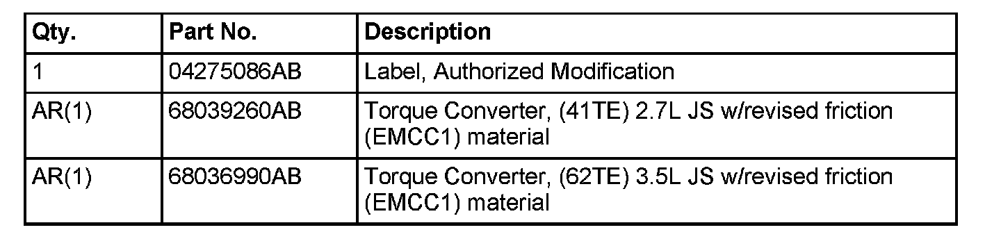 This bulletin involves reprogramming the Powertrain Control Module (PCM) with new software if shift harshness is the symptom/condition - OR - if shudder is the symptom/condition, reprogramming the Powertrain Control Module (PCM) and replacing the torque converter with one that includes revised friction material.