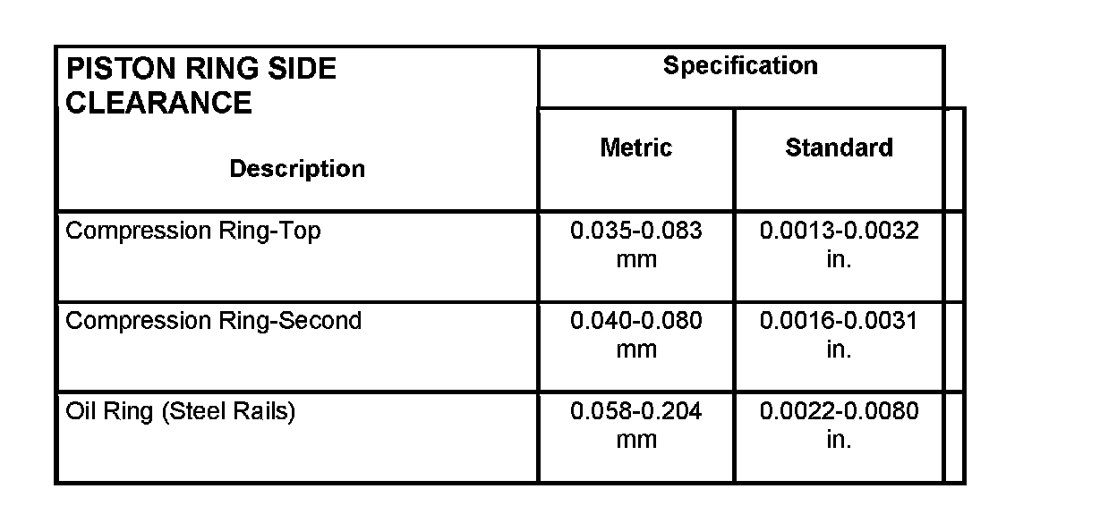 Piston Ring Side Clearance: