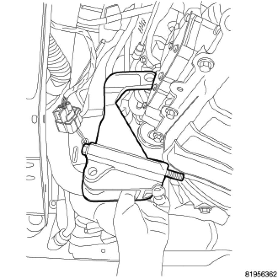 12. Install lower engine anti-roll mount bolt (2) and tighten bolts to 47 Nm (35 ft. lbs.).