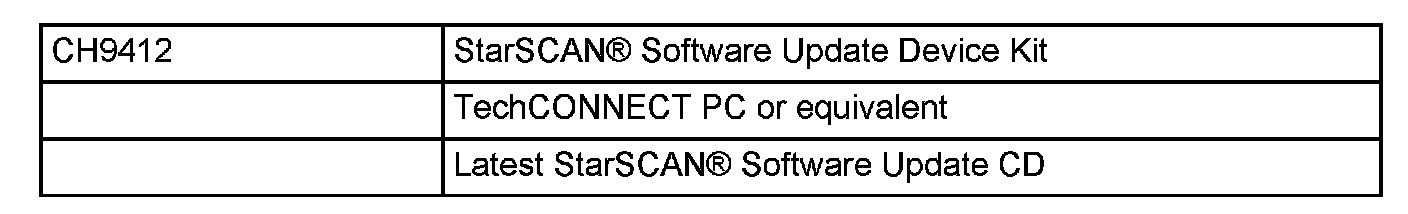 Before performing this Repair Procedure, the operating software in the StarSCAN(R); must be programmed with software release level 7.04 SPI or higher. The software release level is visible in the blue header at the top of the StarSCAN(R) screen.