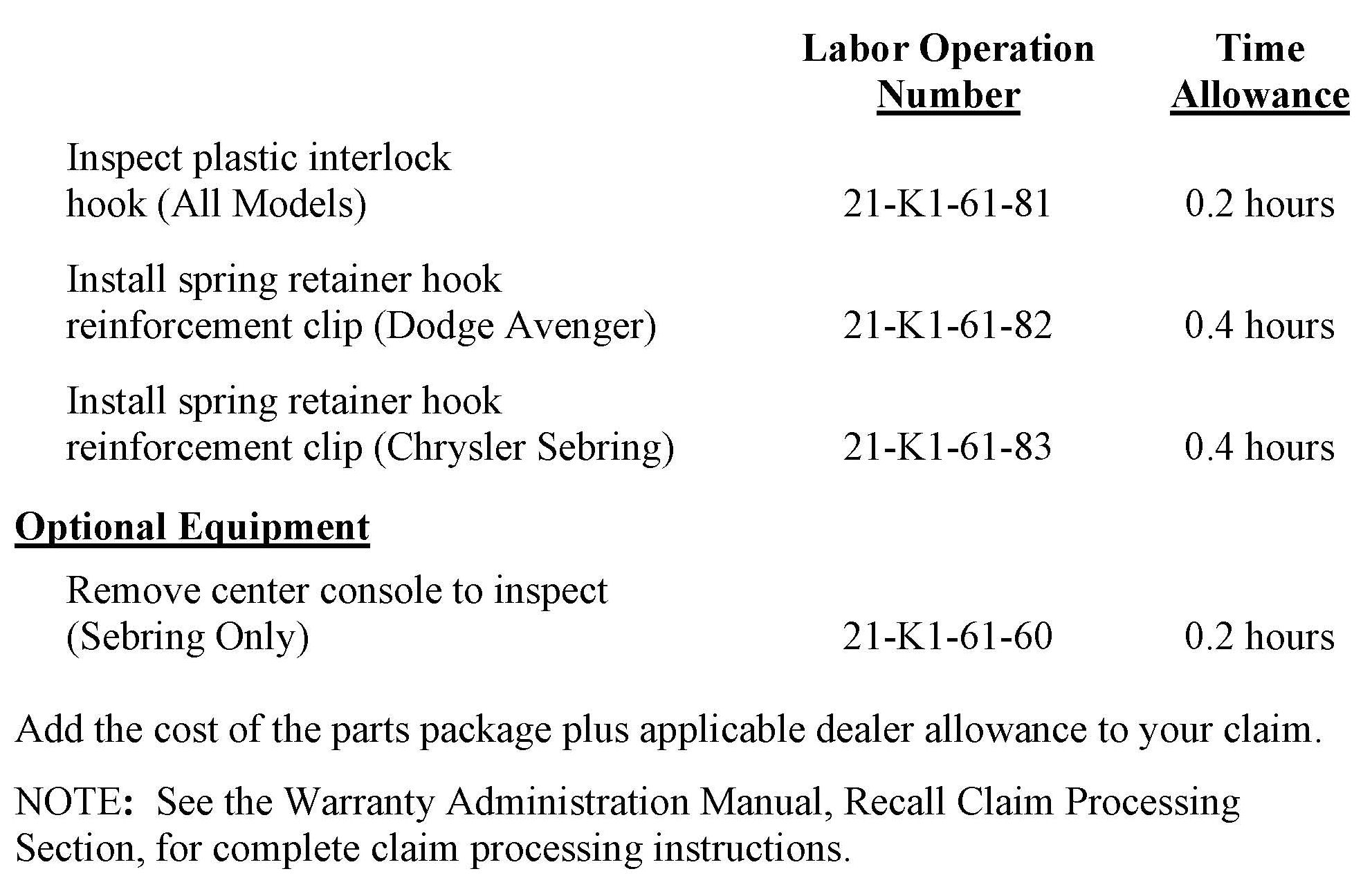 approaches for this notification. This repair does not require hoists or other full service facility special equipment and is a Chrysler Mobile Service approved repair.