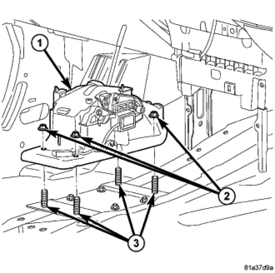 1. Install and tighten the shift mechanism-to-lower console nuts (2) to 8 Nm (71 in. lbs.).