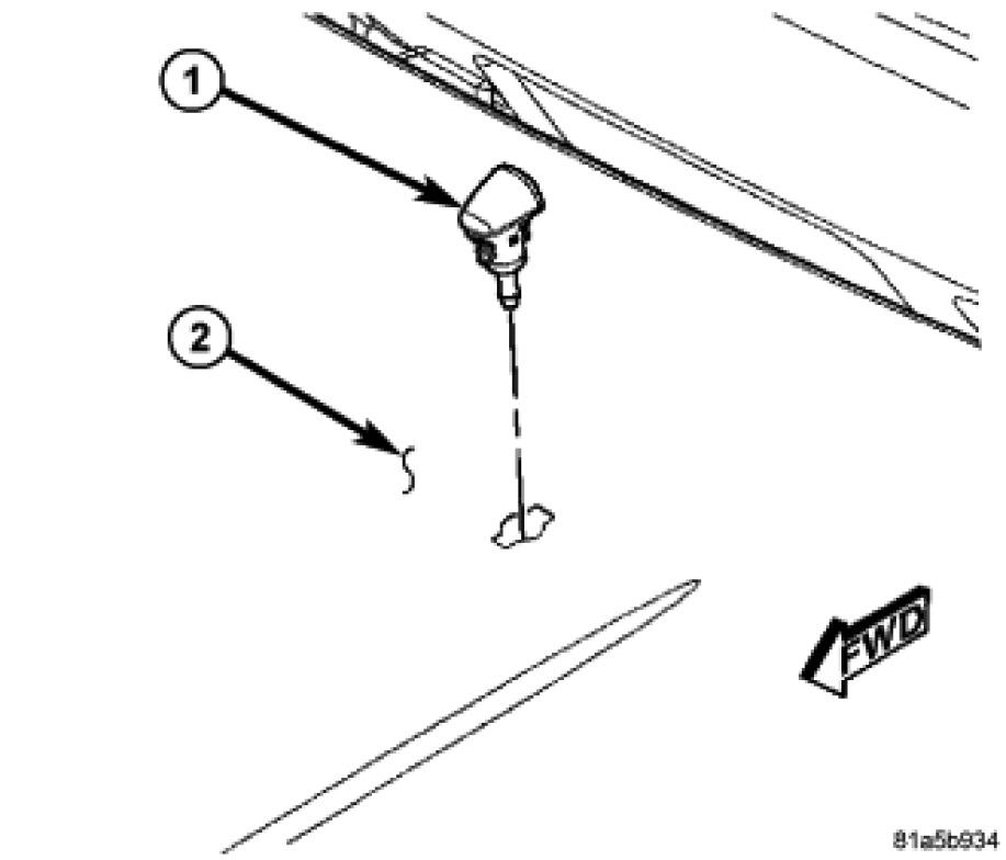 When installing, make sure that both locking tabs are securely snapped into position then connect the washer fluid hose.