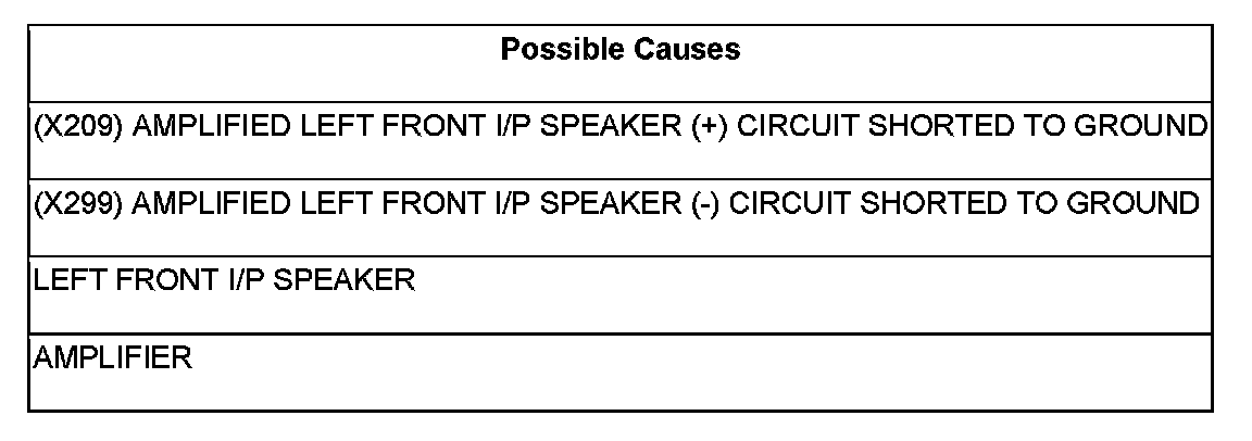 - Repair the (X209) Amplified Left Front I/P Speaker (+) circuit for a short to ground.